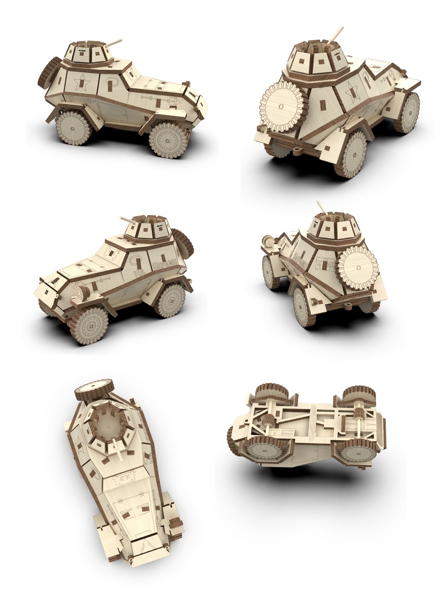 Масштаб модели 1/35 - Набор деталей для самостоятельной сборки копии одной модели из фанеры с клеем и движущимися элементами. Время с нашим конструктором пролетает незаметно для детей и взрослых. Наборы можно использовать в индивидуальной домашней работе с детьми, а также в школах, кружках, оздоровительных лагерях и тп. при желании собранный танк можно покрасить акриловыми красками для масштабных моделей.