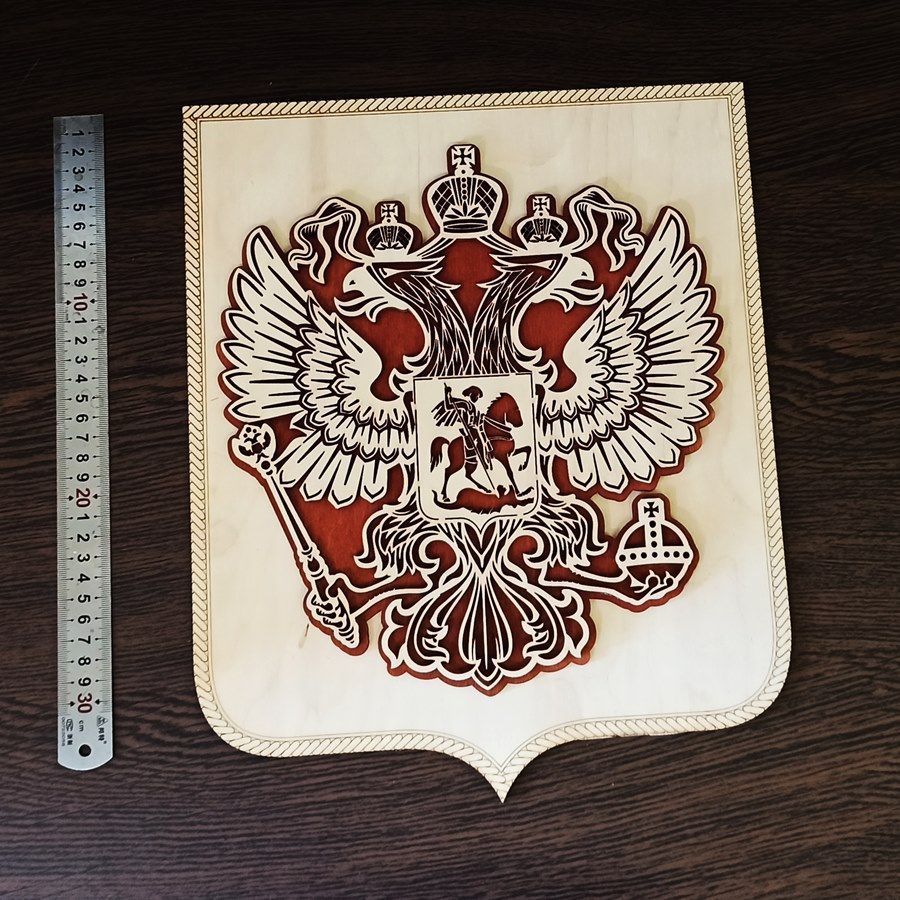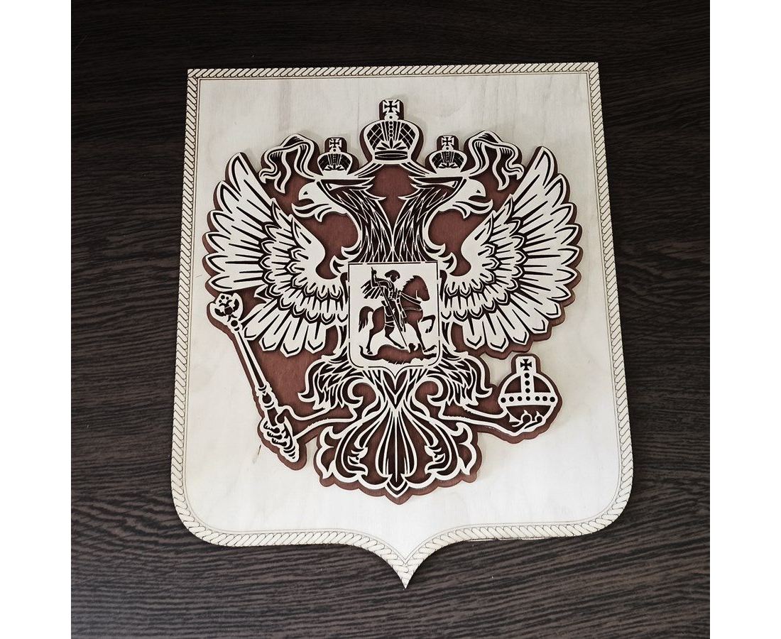 Герб Российской Федерации из дерева на стену, Двуглавый орел РФ, панно в кабинет, подарок, сувенир