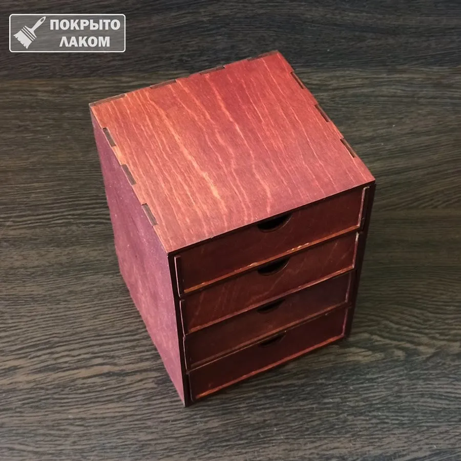 Органайзер универсальный 4 ящика для косметики, офиса, дома канцелярии дерево-фанер собранный