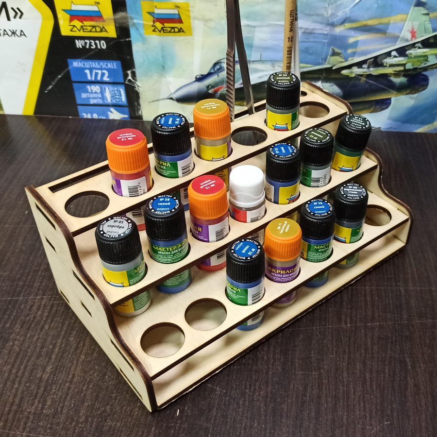 Полка для краски Zvezda (Звезда) Акрил и Мастер-акрил вместимость 21шт.+ место для кисточек и инструмента, для баночек до 24мм